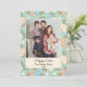 Personalised Easter holiday card with Easter egg pattern, "happy Easter" text, family name and custom photos on the front and back.