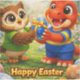 Celebrate Easter with your favourite duo this custom cut vinyl sticker features Rex the T-Rex and hoot the owl sharing a happy Easter moment Rex is looking sharp in his blue cap and denim overalls. Well who looks wise and cozy in his glasses and scarf made from high-quality glossy white vinyl. This durable sticker is perfect for personalising your water bottles, laptops, helmets or notebooks. It's resistant and designed to last making it a great small gift or party favour for any dinosaur or owl fan