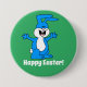 Happy Easter cute and excited cartoon bunny button. A great button for someone celebrating Easter. It features a cartoon rabbit with an excited expression on a green background.