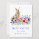 Happy Easter Cute Bunny and Wildflowers Holiday Card