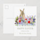 Happy Easter Cute Bunny and Wildflowers Holiday Postcard