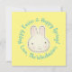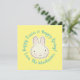 Happy Easter cute bunny cartoon illustration with custom modern script text yellow Easter greeting card.