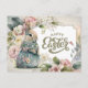 Happy Easter. Watercolor Cute Old-Fashioned Bunny with Flowers design Easter Postcard. Matching cards, favours and gifts available in the Holidays / Easter Category of our store.