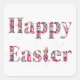 Happy Easter Decorative text with colorful easter eggs, bunnies and flowers