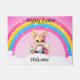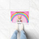 This Happy Easter Welcome mat will look great on your doorstep with a rabbit with a coloured egg and flowers sitting on the clouds