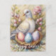 Easter dove sitting on a nest of twigs with eggs lying in it in the Faberge style