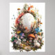 Great Easter Poster with a big easter egg and cute animals like an easter bunny or rabbit. Magical Fantasy Forest Floral Art with flowers and adorable animals. Giant Easter eggs.