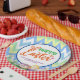 Cute happy Easter disposable paper plates, change the text yourself when you order.