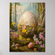 Great Easter Poster with a big easter egg and cute animals like an easter bunny or rabbit. Magical Fantasy Forest Floral Art with flowers and adorable animals. Great Easter egg hunt.