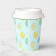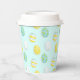 Happy Easter paper cups decorated with egg pattern on blue background