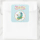 Happy Easter Eggs and Butterflies on Blue Stripes Square Sticker