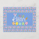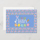 A Happy Easter Typography Greetings Postcard In Blue With Easter Gnomes And Coloured Eggs