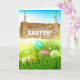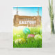 Happy Easter Eggs Wooden Sign Board Greeting Card