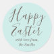 Happy Easter Elegant Script Blue Green Classic Round Sticker