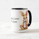 Two very cute easter bunnies with the words "Happy Easter Elizabeth" which can be edited by you so you can change the name or put a different phrase on it to suit you. The two bunnies are also editable, meaning you can move them or transfer them to a different type of drinkware. Generative content.