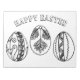3 hand drawn Easter eggs each feature a fancy pattern with the phrase "Happy Easter" curved across the top. Keep your kids entertained with the pen and ink line drawing that's perfect for colouring. You can customise the text in the sidebar if you like.
