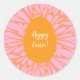 Happy Easter floral egg. Cute orange egg with floral abstract burst. Retro Easter sticker
