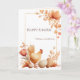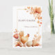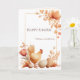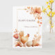 A warm and charming Easter greeting card featuring a delicate floral frame and a sweet chicken illustration.