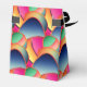 Celebrate Easter with these colourful customisable, favour boxes with two text templates, with curve text, featuring an abstract pattern of four beautiful, gradient, and stripe, colourful, Easter eggs with foil texture edges.