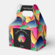 Celebrate Easter with these colourful customisable, favour boxes with six text templates, with curve text, featuring an abstract pattern of four beautiful, gradient, and stripe, colourful, Easter eggs with foil texture edges.