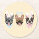 Cute illustration of French Bulldogs dressed in Easter attire with bunny ears and Easter eggs. Perfect for dog lovers and pet parents for Easter.