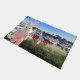 Happy Easter Hilton Head style! The design on this beautiful Easter doormat features an original photograph of the Harbour Town marina at Sea Pines with its luxury yachts, upscale condos, and signature red rocking chairs. A special visit by Easter Bunny dressed in pastel pink holding a decorated Easter basket completes the festive scene. The text reads "Happy Easter from Hilton Head Island." The doormat is the perfect addition to your Easter front porch, lanai, sunroom, mudroom, laundry room, or garage! Please browse our complete collection of Hilton Head and Lowcountry Easter cards, gifts, and home decor. Special design requests accepted. (Photography and Creative Design by Glenda Motsavage)