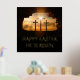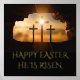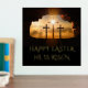 Elegant Illuminated Cross on Calvary with a Black Background. Happy Easter. He Is Risen Gold Foil Ornate Lettering.