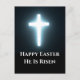 Happy Easter He is Risen White Light Cross Holiday Postcard