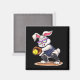 Happy easter holiday bunny playing softball catcher girls - Square Magnet .Square Magnet A modern aesthetic designed for versatility. A refined design with minimal elements.