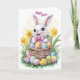 Happy Easter with this cute animals like easter bunny or baby chick. Join the easter egg hunt in spring with vibrant colours and joy, candy and a floral vintage fantasy. Cute rabbit with flowers. Easter cards with happy easter logo.