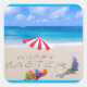 Happy Easter in the Sand Coastal Tropical Beach Square Sticker