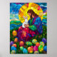 Stained Glass Art of Jesus Christ with a cute easter bunny and vibrant easter eggs. Cute rabbit animals for the resurrection of the christian religion. Happy Easter! With Jesus.