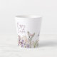 12 oz Latte Mug with a border of floral Easter eggs, bunny and butterfly and Happy Easter