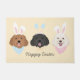 Cute illustration of Maltipoo dogs dressed in Easter attire with bunny ears and Easter eggs. Perfect for dog lovers and pet parents for Easter.