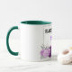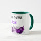 EASTER MUG FOR "MOM" WITH PURPLE FLOWERS AND TWO TONED HANDLE AND INTERIOR.