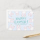 Happy Easter teal pink pale blue and white custom text cute bunnies rabbits modern fun funny Easter Postcard