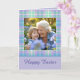 Happy Easter Plaid One Photo Purple Blue Pastel Card
