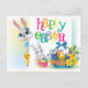A Cute Happy Easter Bunny And Baby Chick Easter Greeting Postcard