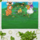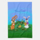 Happy Easter! Rabbit with Bunny and Chick Tea Towel