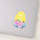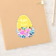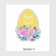 Happy Easter floral egg. Cute floral orange egg with retro plaid pattern background. Retro rustic Easter sticker