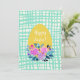 Happy Easter rustic plaid floral orange egg Holiday Card