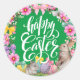Happy Easter Script Floral Green Easter Bunny Egg Classic Round Sticker