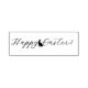 Stylish script text reading "Happy Easter!" with a cute sitting bunny silhouette between the words. Ideal for Easter mailings, envelope décor and festive seasonal touches.