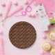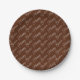 A paper plate with a Happy Easter script pattern in brown and white. Customise the brown background in an easy way.