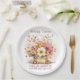 Happy Easter Spring Pink and Yellow Flowers Paper Plate