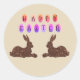 Happy Easter Sticker, chocolate rabbits and colorful eggs.