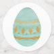 Happy Easter in Gold Script, pastel eggs and a Golden Egg on confetti.