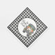 An Adorable Black And White Buffalo Plaid Paper Napkin For Easter With Bunny Jumping In The Back Of Truck