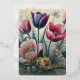 Personalized vintage tulips Easter tulip flowers card featuring elegant botanical floral artwork in blush pink, mauve, red, and purple tones. A refined non-photo floral design perfect for family holiday wishes.