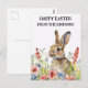 Happy Easter Watercolor Bunny in Flowers Family Postcard